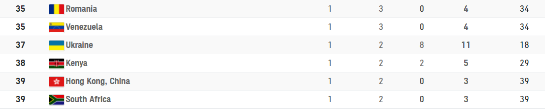 По состоянию на 4 августа Украина занимает 37-е место в медальном зачете и 18-е место по общему количеству олимпийских наград — у нас их 11. Лидером Олимпиады остается Китай — 32 золотых медалей, 22 серебряных и 16 бронзовых.
