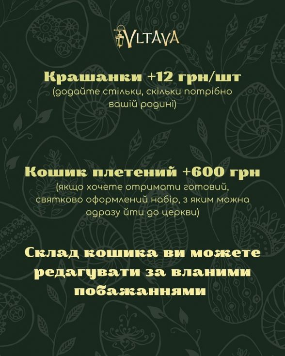 Ми знаємо, як важливо в це світле свято звільнити час для найрідніших, а не проводити його на кухні. Тому ресторація «Vltava» вже відкриває замовлення на наші особливі Великодні кошики!