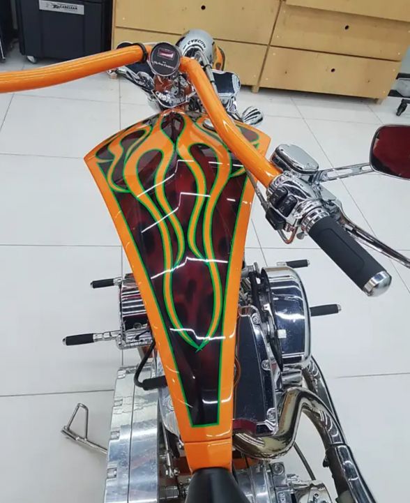 Рідкісний кастомний мотоцикл від американського виробника Big Bear Choppers — справжній витвір байкерського мистецтва. Байк створений вручну та має агресивний дизайн із дуже широким заднім колесом і потужним двигуном об’ємом близько 1,6 літра. Подібні мотоцикли відомі тим, що їх використовували у фільмах та шоу — зокрема, байки цього бренду з’являлися у стрічці «Нестримні». Такий мотоцикл — це не просто транспорт, а ексклюзивний проєкт для колекціонерів і поціновувачів кастом-культури.