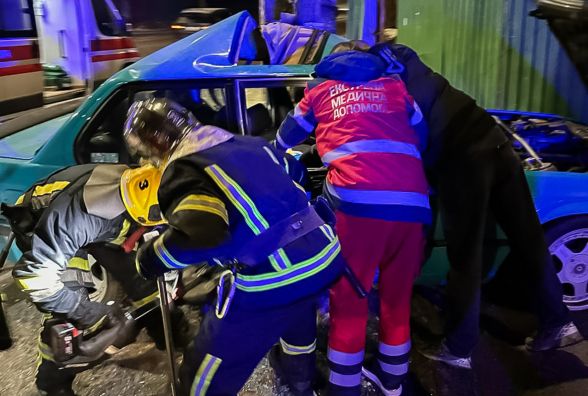 - Легковик врізався в електроопору, через що водія затисло в понівеченому салоні.