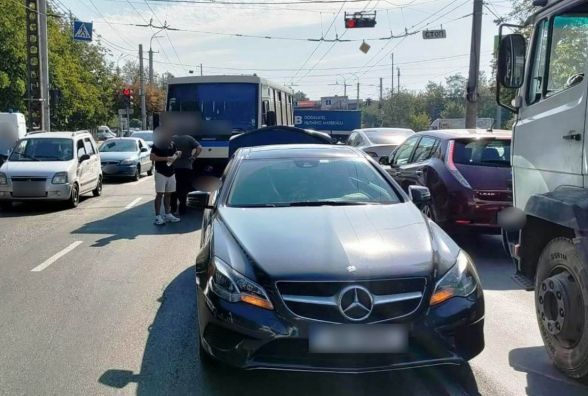 На вулиці Брацлавська автобус в'їхав у Mercedes. Є постраждала