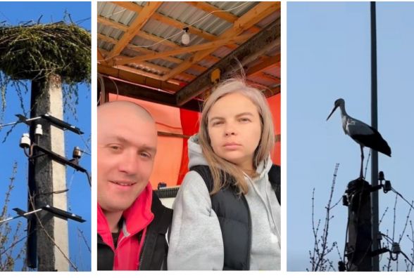 - Молоде подружжя побачило, як лелека намагається відновити «хатину» і взялося допомогти.