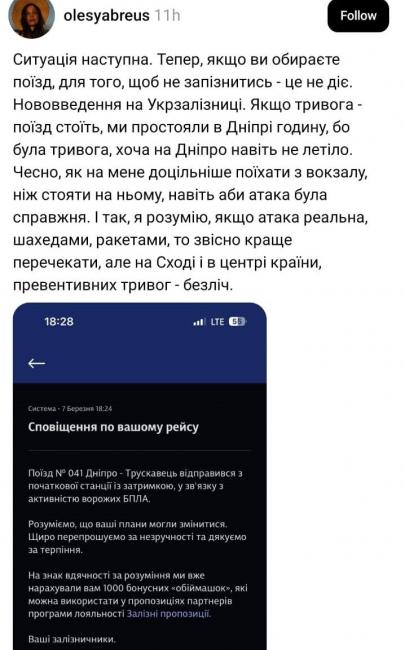 Уся інформація про ситуацію на маршруті, прогноз руху та можливі затримки оперативно надходить пасажирам через push-сповіщення в додатку Укрзалізниці.
